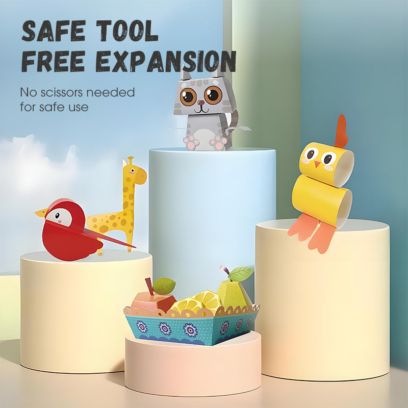 ✅ BEZPIECZNY DESIGN – BEZ NARZĘDZI – Dzięki precyzyjnej perforacji i gotowym liniom cięcia, książeczka nie wymaga użycia nożyczek ani ostrych narzędzi. Dzieci mogą bezpiecznie korzystać z zestawu samodzielnie, bez ryzyka skaleczeń – spokój dla rodziców, zabawa dla maluchów!
