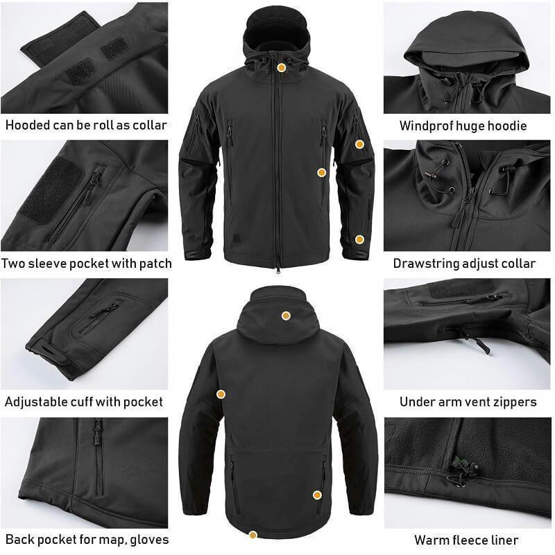 The Military Tactical Jacket composed of breathable moisture wicking fabric and features a waterproof polyester shell, it is durable, waterproof, lightweight, breathable. -