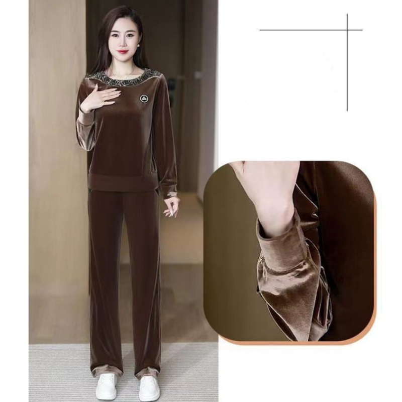 Odkryj idealny prezent dla niej dzięki naszemu damskiemu garniturowi z długim rękawem i spodniami. Ten stylowy i wygodny kombinezon został zaprojektowany tak, aby wzbogacić jej garderobę swoim wszechstronnym i szykownym wyglądem. Wykonany z najwyższą starannością i dbałością o szczegóły, ten kombinezon łączy w sobie miękkość, wygodę i modę, aby zapewnić najlepsze wrażenia z noszenia. Niezależnie od tego, czy relaksuje się w domu, czy wychodzi na swobodne wyjścia, ten garnitur z pewnością stanie się jej ulubionym zestawem.