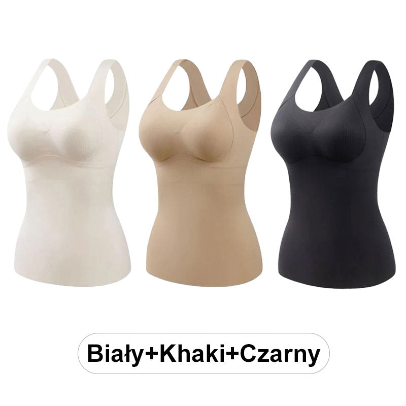 WSZECHSTRONNA KONSTRUKCJA 2-IN-1 SLEEVELESS - Pożegnaj się z kłopotami związanymi z koordynacją oddzielnych biustonoszy. Nasze podkoszulki termiczne są wyposażone we wbudowane wkładki na miseczki, zapewniając wygodę i komfort.