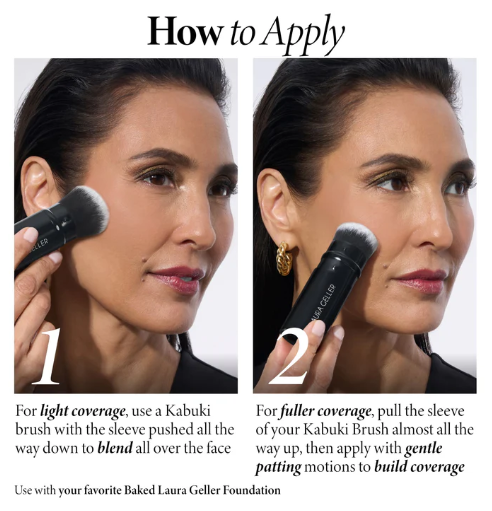 For medium coverage, apply with the protective sleeve of the Retractable Kabuki Brush pulled almost all the way up. Swirl onto the powder then gently dab onto face. Repeat as needed.