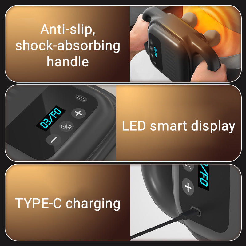 POTĘŻNA KONSTRUKCJA CZTEROGŁOWICOWA: Posiada potężną konstrukcję czterogłowicową, umożliwiającą relaks na dużym obszarze. Ta wydajna konstrukcja zapewnia skuteczniejsze rozluźnienie mięśni poprzez pokrycie większej powierzchni za każdym pociągnięciem, znacznie poprawiając relaksację i regenerację.