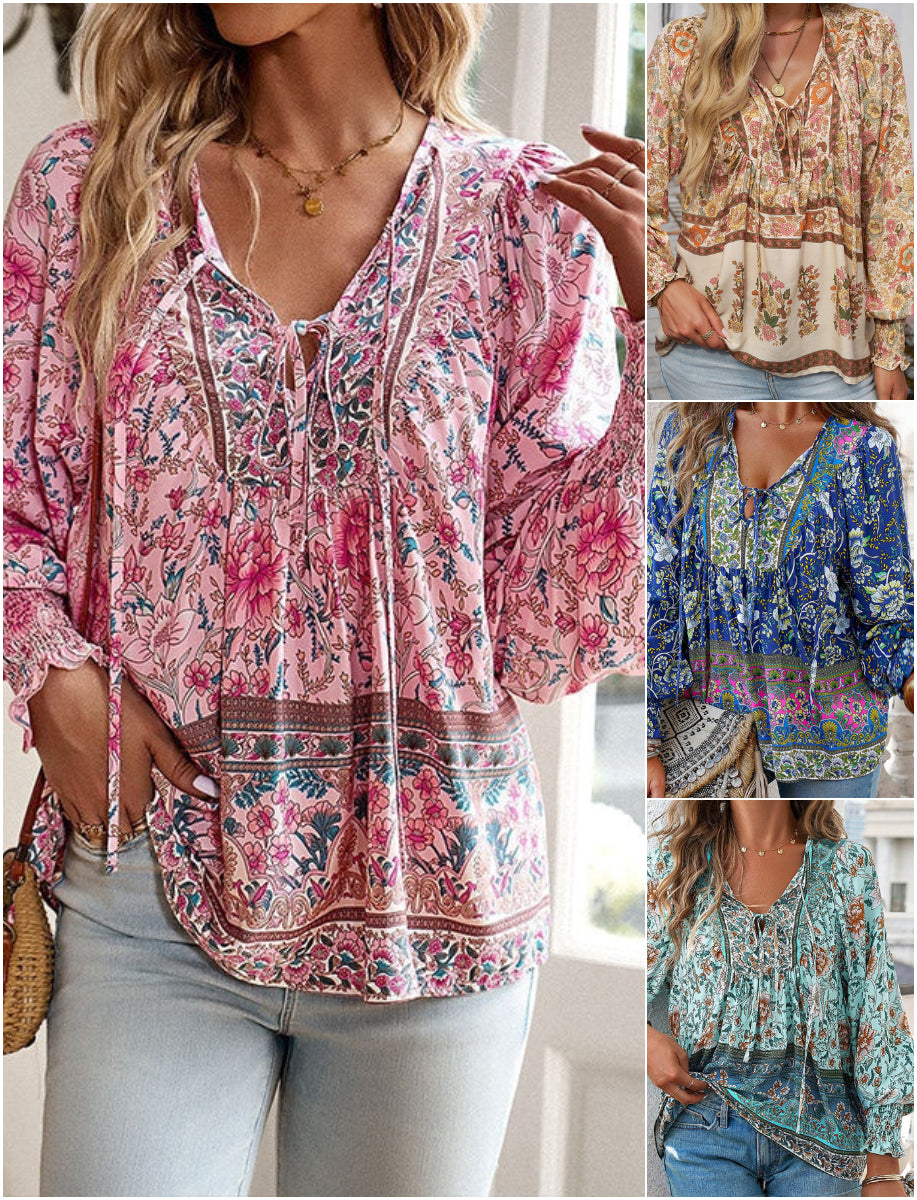 Pakiet zawiera:1 * Modna damska koszulka z długim rękawem i dekoltem w serek z nadrukiem
