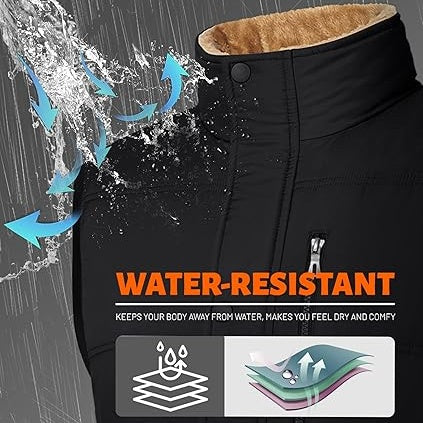 NAJWYŻSZA WARSTWA CIEPŁA - Ciesz się doskonałą izolacją dzięki naszej grubszej, wyściełanej pluszem podszewce. Ta kamizelka skutecznie zatrzymuje ciepło ciała, tworząc potężną barierę termiczną chroniącą przed silnym wiatrem i mrozem, zapewniając komfortowe ciepło przez cały sezon.