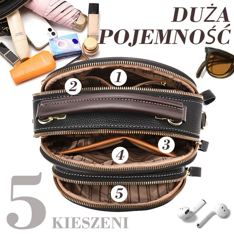 ✨Klasyczna wielokomorowa torba na ramię z regulowanym szerokim paskiem ze skóry PU