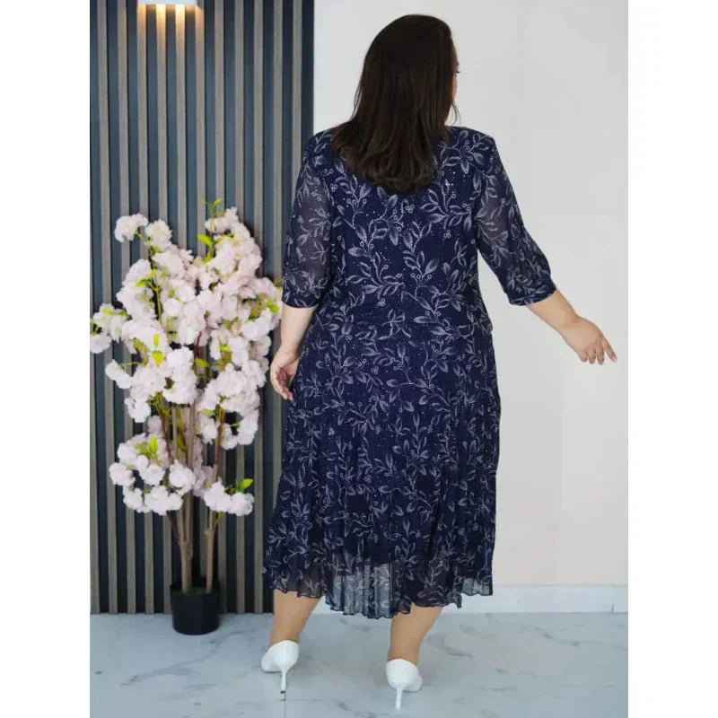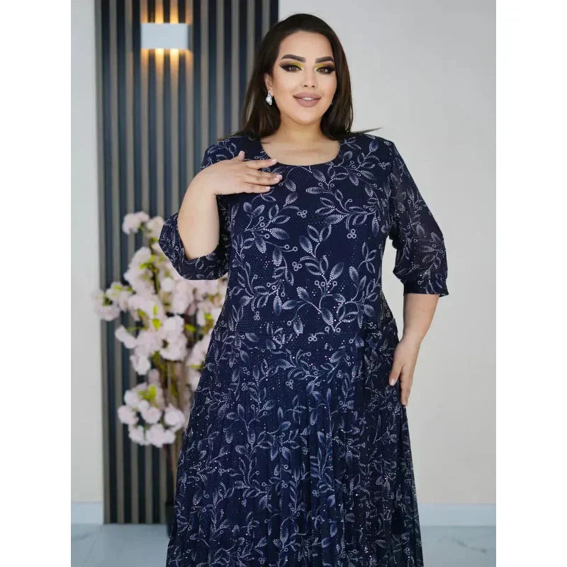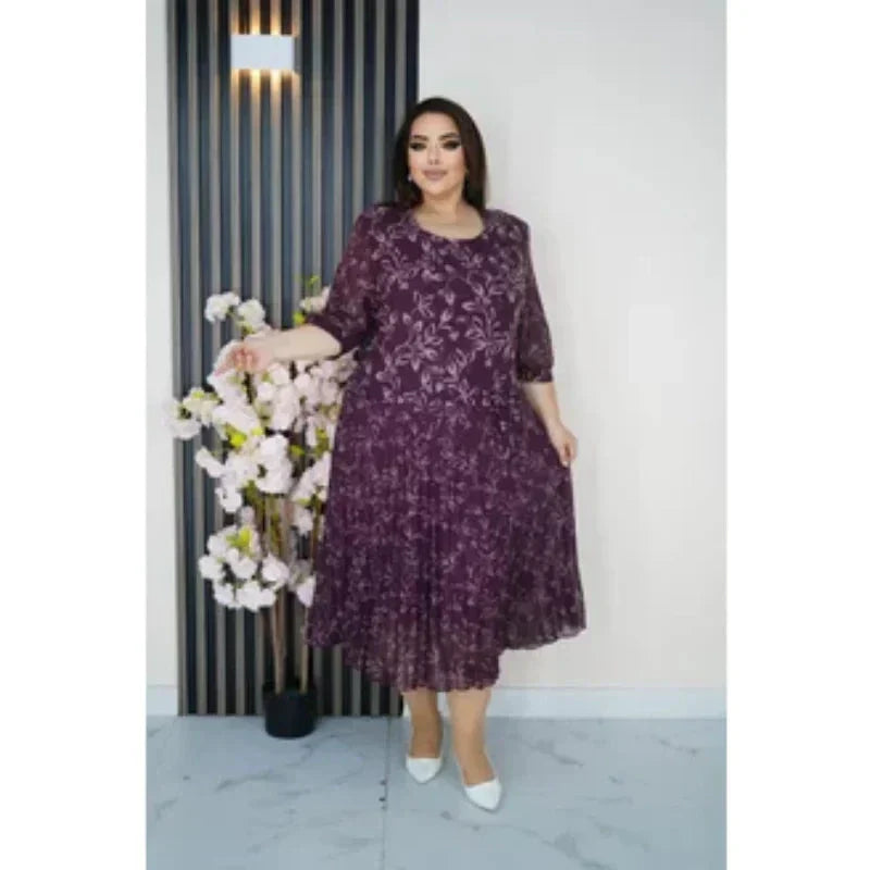 💖Sukienka w dużych rozmiarach z okrągłym dekoltem i rękawami 3/4