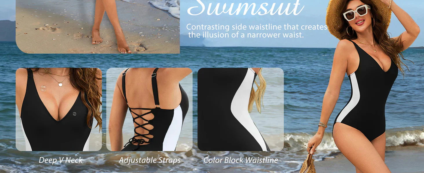 - Doskonały design: Ten strój kąpielowy podkreśla figurę i sprawia, że nogi wyglądają na dłuższe. Super miękki materiał spandex zapewnia jedwabisty dotyk, a szybkoschnący elastyczny materiał zapewnia wygodne dopasowanie. Charakterystyczne wiązanie na plecach, w pełni regulowane ramiączka