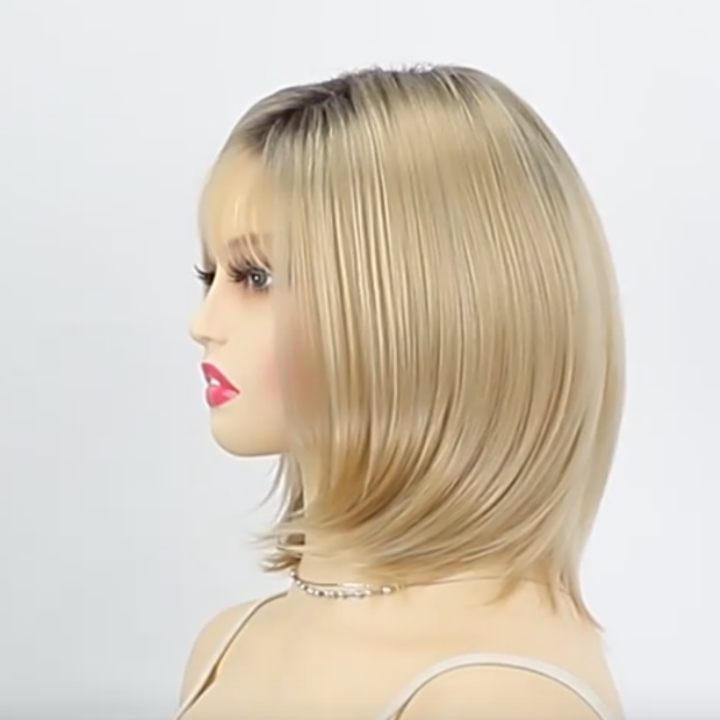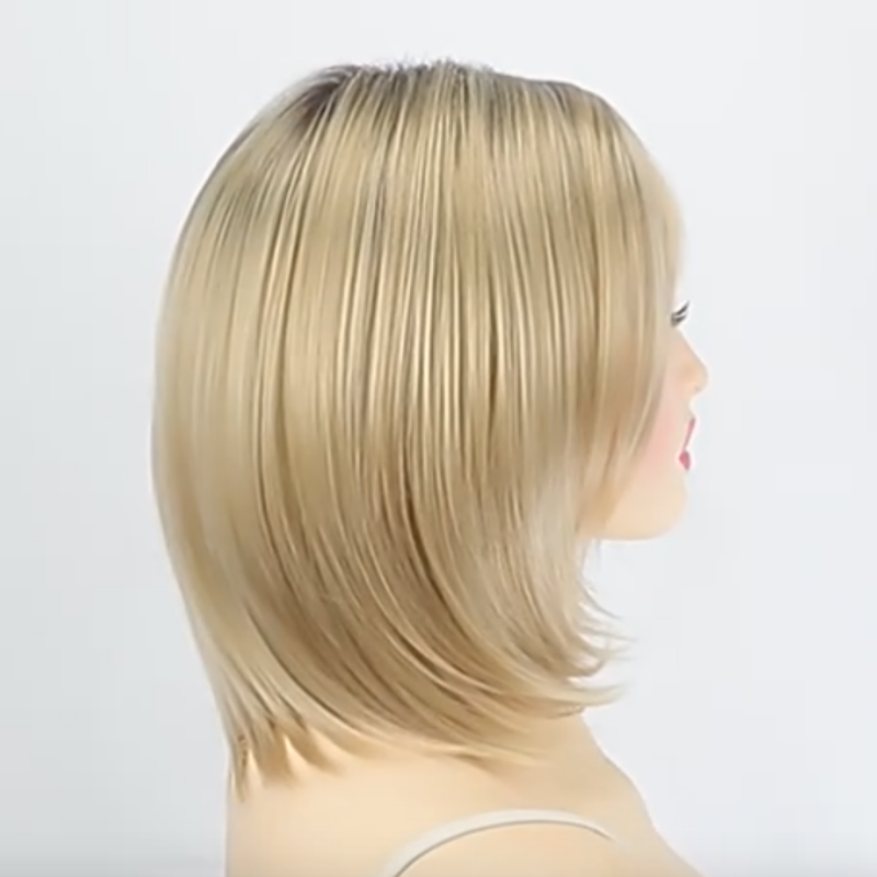NATURALNY STYL Z DELIKATNĄ GRZYWKĄ: Zaprojektowana z pochlebnym krojem i pełną grzywką, która delikatnie otacza twarz, ta peruka podkreśla ogólny styl z bezwysiłkowym urokiem.