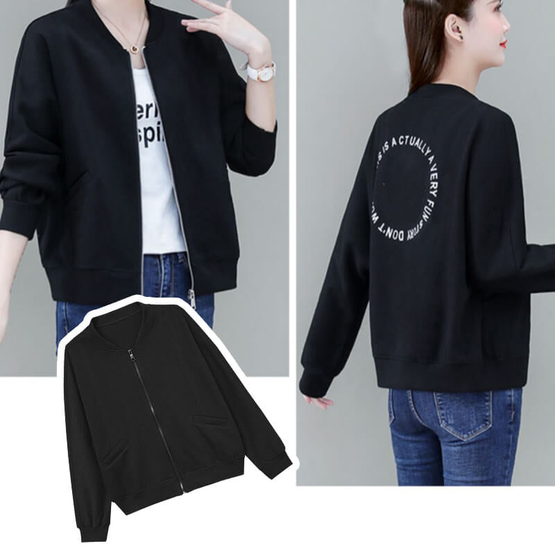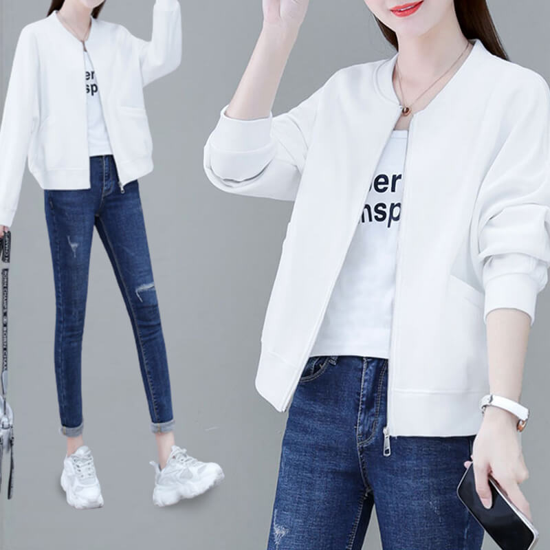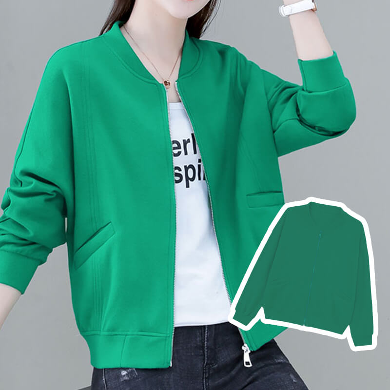 Solid Color Zipper Casual Age Reducing Baseball Jacket