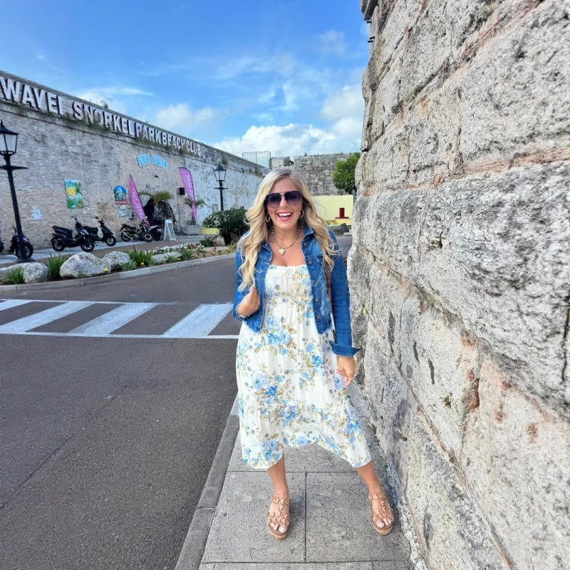 SEZONOWA PALETA KOLORÓW: Dostępna w ponadczasowych czerwonych i spokojnych niebieskich nadrukach, sukienka ma żywe kwiaty na wyraźnym białym tle. Kolory te zostały starannie dobrane, aby pasowały do szerokiej gamy odcieni skóry i stylów, dzięki czemu nadają się na każdą porę roku.