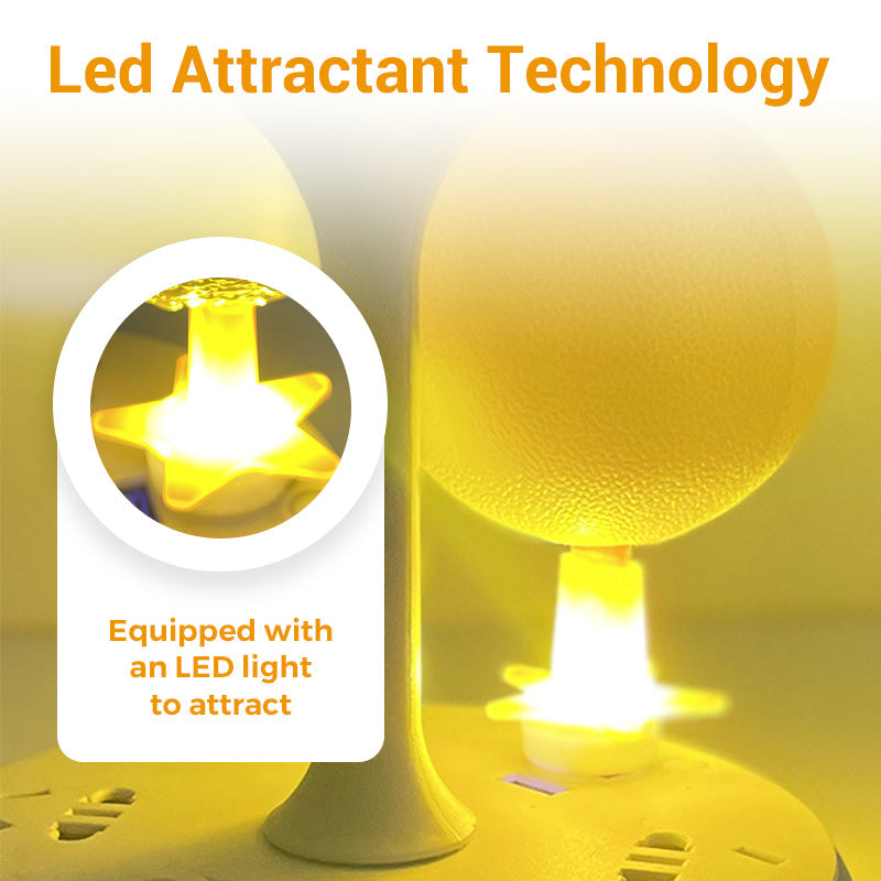 TECHNOLOGIA ATRAKCYJNA LED - Wyposażona w światło LED przyciągające muszki owocowe, komary i inne małe owady latające, pułapka ta zapewnia skuteczne łapanie szkodników w dzień i w nocy.