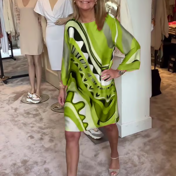 Modna sukienka z długim rękawem i nadrukiem