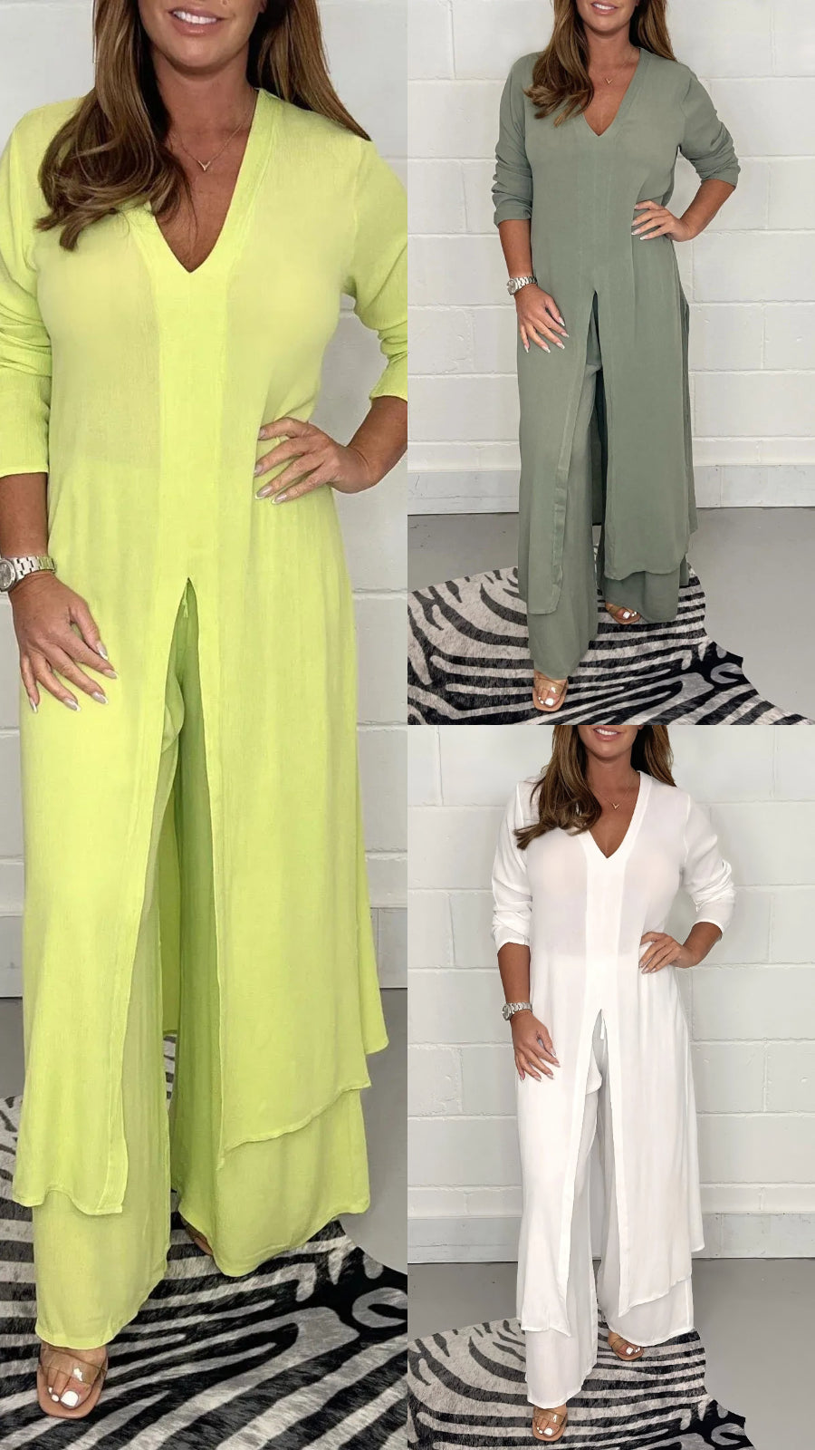🥰Dwuczęściowy casualowy długi top i casualowe spodnie✨