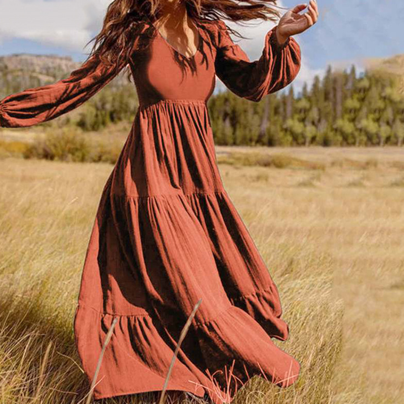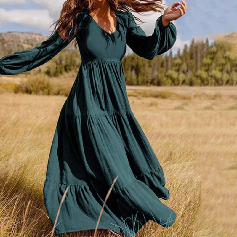 Sukienka damska w jednolitym kolorze z dekoltem w serek