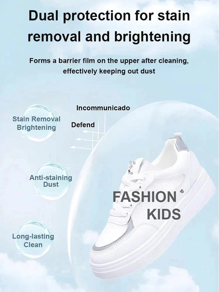 - Odkażanie i rozjaśnianie, podwójny czynnik ochronny, po czyszczeniu na cholewce tworzy się film izolacyjny, który może izolować kurz i plamy. Używaj bez mycia wodą, aby łatwo i szybko usunąć uporczywe plamy z butów.