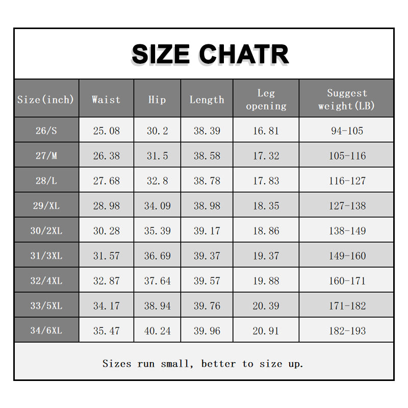 Rozmiary: 26/S, 27/M, 28/L, 29/XL, 30/2XL, 31/3XL, 32/4XL, 33/5XL, 34/6XL