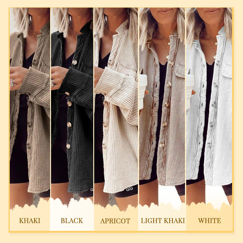Women\'s Waffle Knit Shacket Button-Down Shirt Jacket